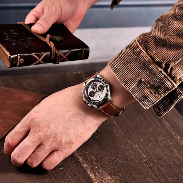 Crafted from 316L stainless steel, this timepiece ensures durability, corrosion resistance, and a refined polished finish. The brown leather strap adds sophistication and comfort for everyday wear.