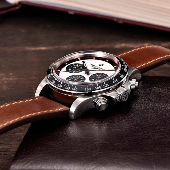 The Marchier Arcturus White Sport Edition blends classic chronograph styling with modern durability. With 100m water resistance, it is engineered for versatility and confidence.