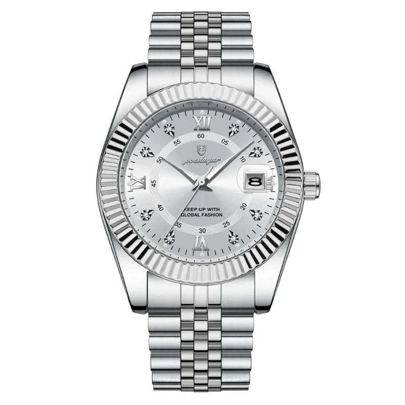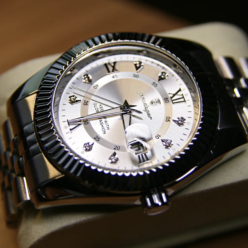 The Marchier Aviator Watch transforms the ordinary into the extraordinary. With its sleek 40mm case and fully polished silver-tone design, it embodies contemporary minimalism blended with traditional craftsmanship — a true expression of confidence and style.