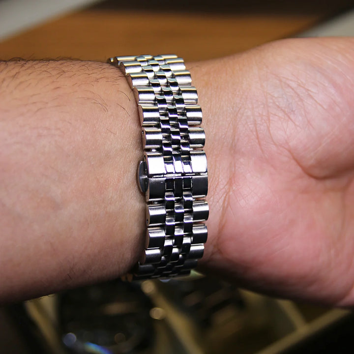 Our straps are made from 316L hypoallergenic stainless steel or premium treated leather. They don’t oxidize, corrode, or cause irritation, even with long-term wear.