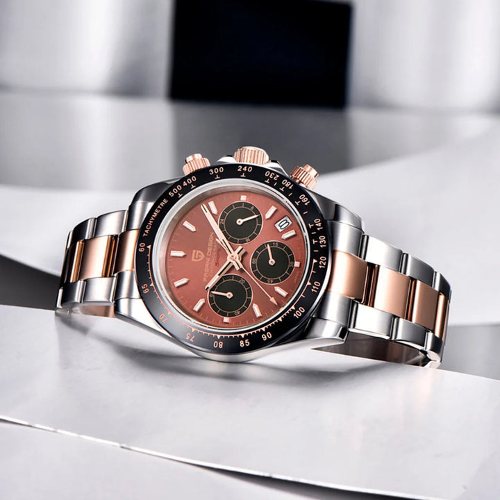 Crafted from 316L stainless steel with rose-gold accents, this timepiece offers resilience, corrosion resistance, and a luxurious two-tone brilliance.