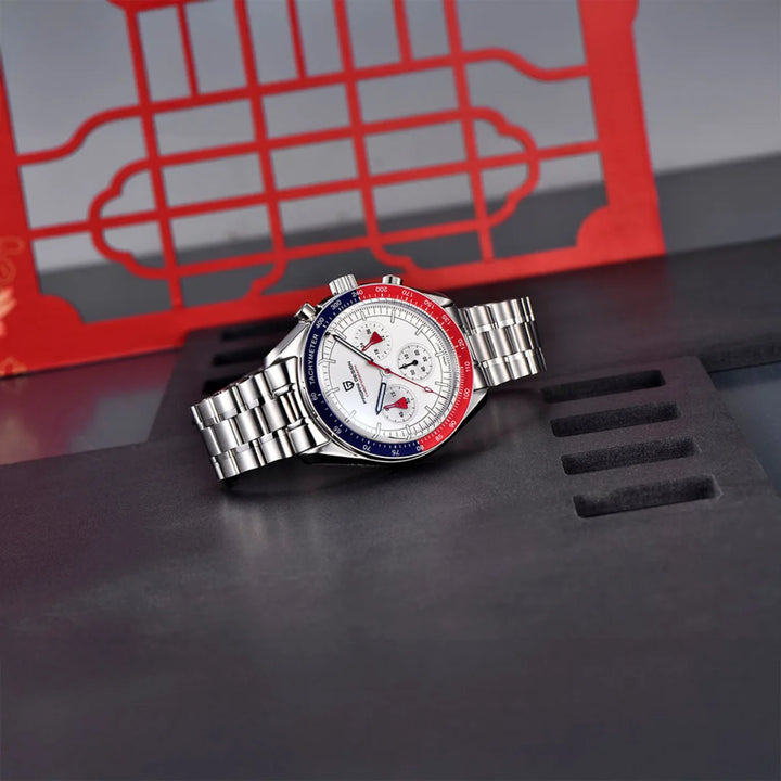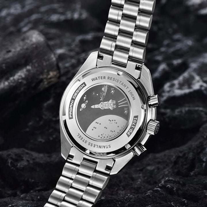 Crafted from 316L stainless steel, this chronograph provides resilience, corrosion resistance, and a polished brilliance that elevates everyday wear.