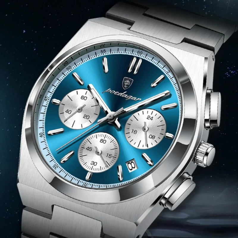 The Marchier Deepwave Watch is a bold symbol of strength and control. Inspired by elite design, it embodies confidence through every detail — from its 40mm case to its chronograph functionality and luminous steel hands. Designed for those who move with purpose and lead with presence.