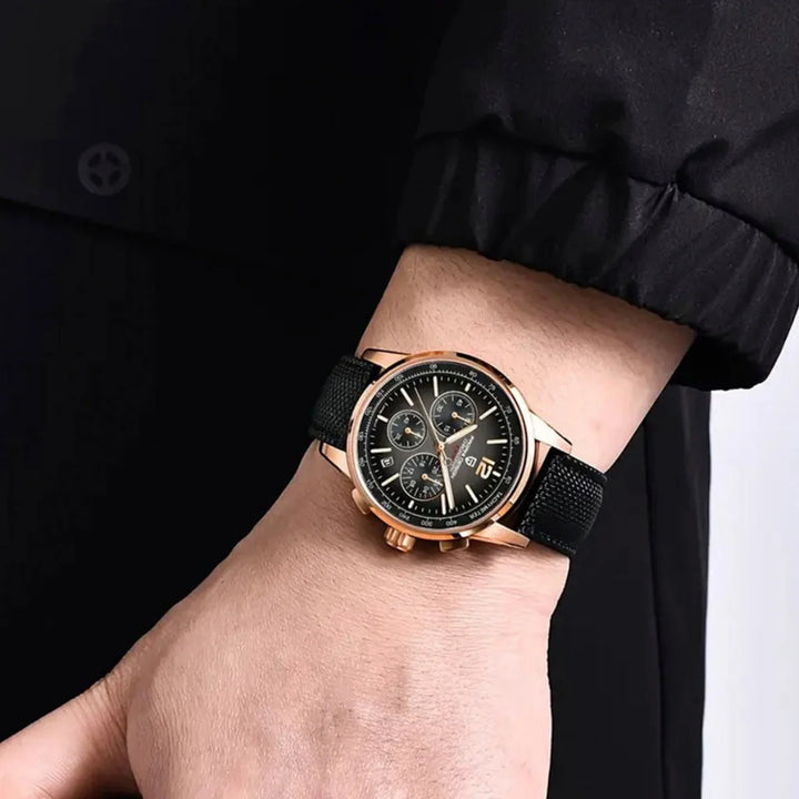 The Marchier Emperor Gold Sport Edition blends luxury and performance. With 100m water resistance, it is crafted for men who demand confidence in every detail.