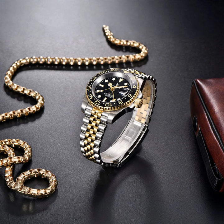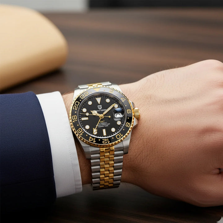 Driven by the Pearl DG5833GMT automatic movement, this watch offers reliable accuracy, dual-time functionality, and a 48-hour power reserve.