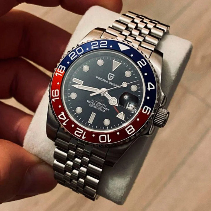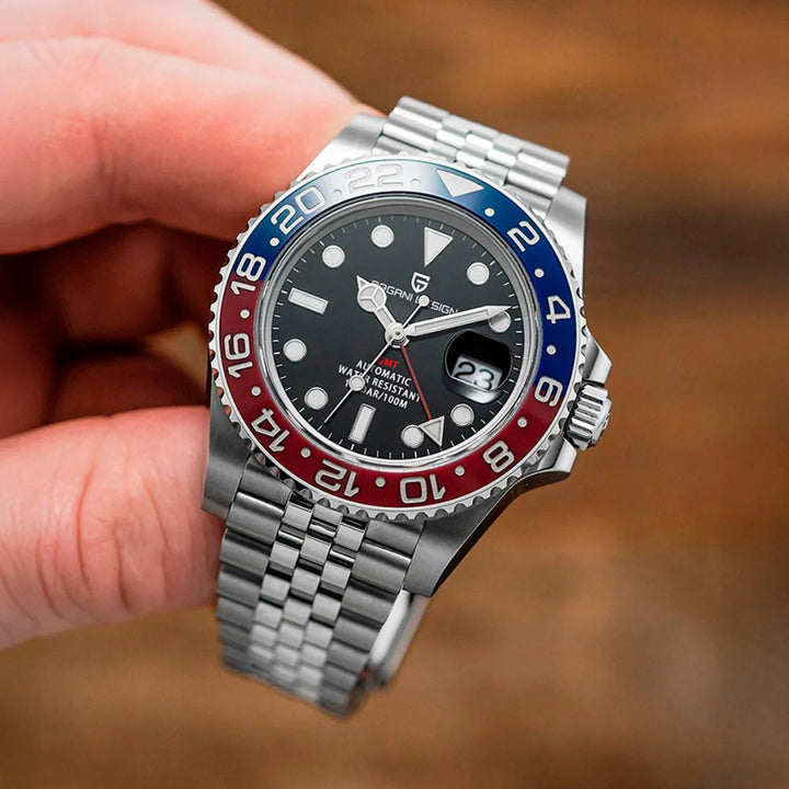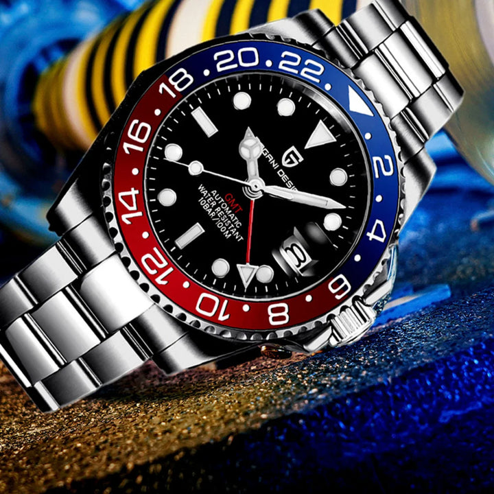 Driven by the Pearl DG5833GMT automatic movement, this watch offers precision, reliability, and a 48-hour power reserve, making it both functional and luxurious.