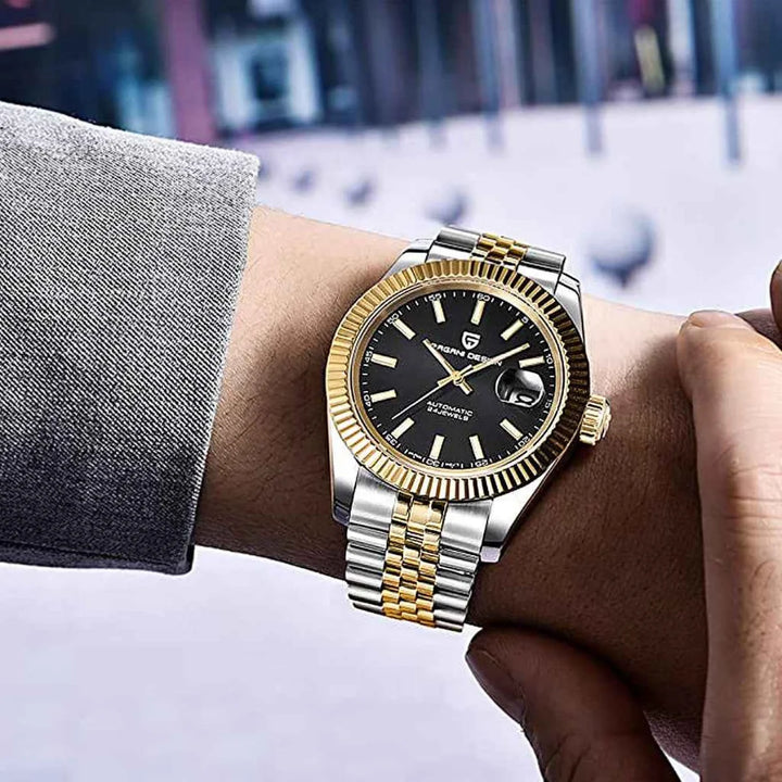 Powered by the reliable Seiko NH35A automatic movement, this timepiece guarantees precision and a 45-hour power reserve, making it a dependable companion for everyday wear and formal occasions.