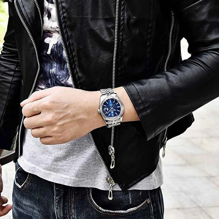 The bracelet and case are made of 316L stainless steel, delivering superior durability, corrosion resistance, and polished brilliance. Designed for everyday comfort, the Shawn Blue feels both substantial and elegant on the wrist.